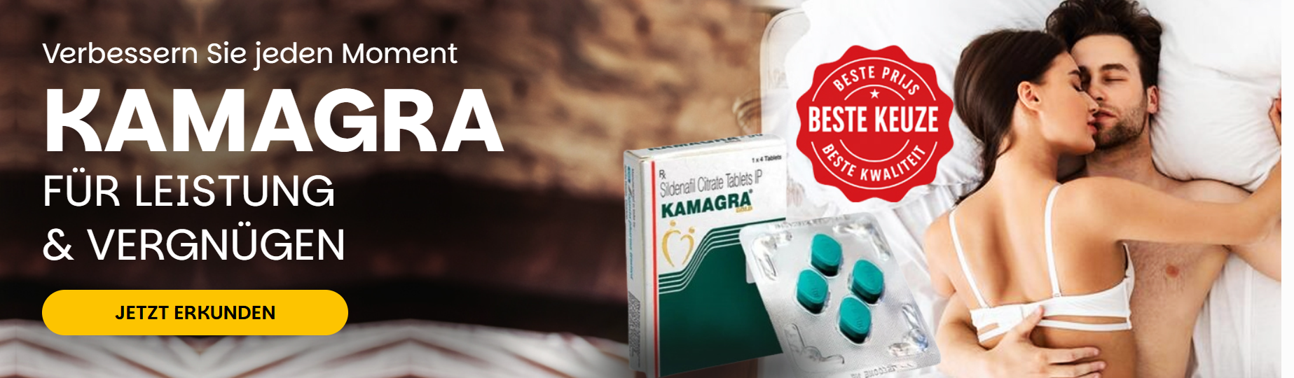 Kamagra Kaufen 24 ist eine führende Online Apotheke in Deutschland und spezialisiert auf die Behandlung von Erektionsstörungen (ED) und vorzeitigem Samenerguss (PE). Unser Produktsortiment umfasst verschiedene Formulierungen für individuelle Bedürfnisse, darunter Tabletten, Kamagra Gel 100 mg, Kamagra gegen Erektionsstörungen, Oral Jelly und weiche Kautabletten. Wir verstehen die Sensibilität dieser Beschwerden und bieten wirksame, diskrete Lösungen, die die Lebensqualität unserer Kunden verbessern.
